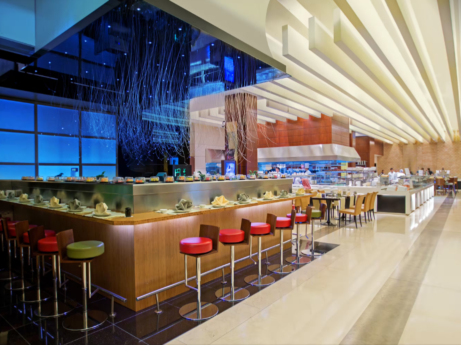 Yen Sushi Bar is a culinary journey through Japan's culinary art, rotating on color-coded plated formulas and serving a variety of sushi and sashimi dishes straight from the Itamae. La Cigale's premier sushi bar is a minimalist, sleek space with bar-style high seating and a bustling atmosphere. The simple design, approachable staff, and calm, quiet interior ensure the food takes center stage. And so it should: Yen Sushi Bar is Japanese casual dining at its absolute best.